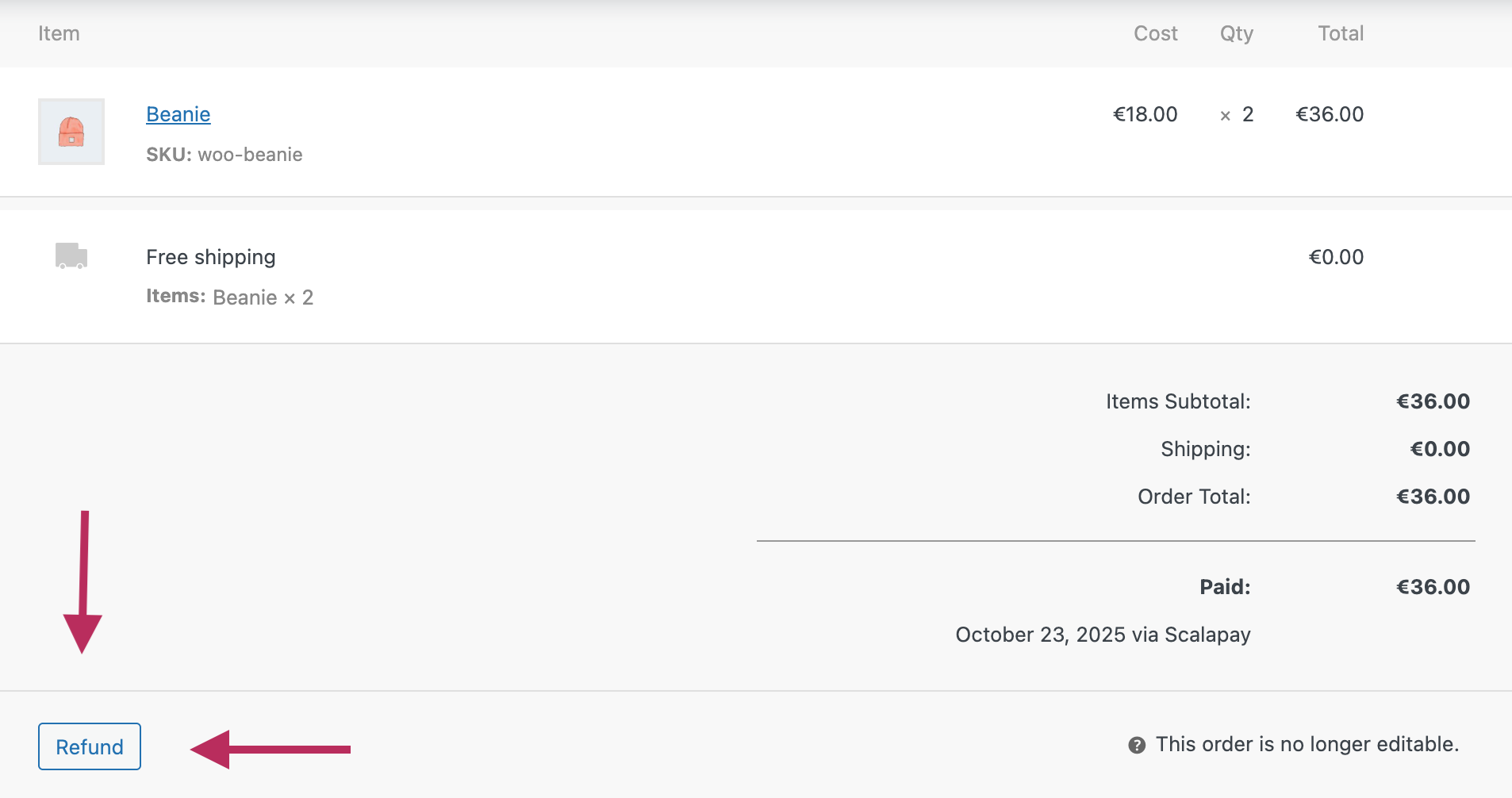 To refund a Scalapay order in the WooCommerce backend, follow these steps.